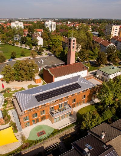 Die räumliche Verbindung von Evangelischer Kirche und diakonischer Einrichtung ist lebendiges Beispiel für die praktische Ausformung christlicher Nächstenliebe. Träger sozialer Dienste und Einrichtungen tun sich im Großraum München besonders schwer, geeignete Grundstücke und Gebäude für notwendige soziale Angebote zu finden, die im Rahmen der Möglichkeiten auch finanzierbar sind. Die Evangelisch-Lutherische Gesamtkirchengemeinde München und angeschlossene Kirchengemeinden konnten hier einen wesentlichen Beitrag zur Unterstützung der Diakonie leisten.
